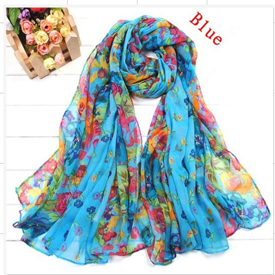 Compare Prices For ladies Women Pure Candy Long Crinkle Scarf Wrap Voile Wraps Shawl Blue.