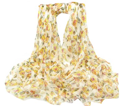 Get The Best Price for Women's 100% Chiffon Silk Scarf / White / Floral / 76" X 44".